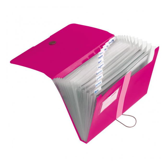 Plastová aktovka produktového radu Easy Orga s 12 plastovými priehradkami s indexami a malou priehradkou vizitkového formátu. Uzatváranie gumičkou o plastový krúžok. • Formát A4 • Kapacita 300 listov • Väčšie balenie 10 ks • Farba ružová (nepriehľadná)