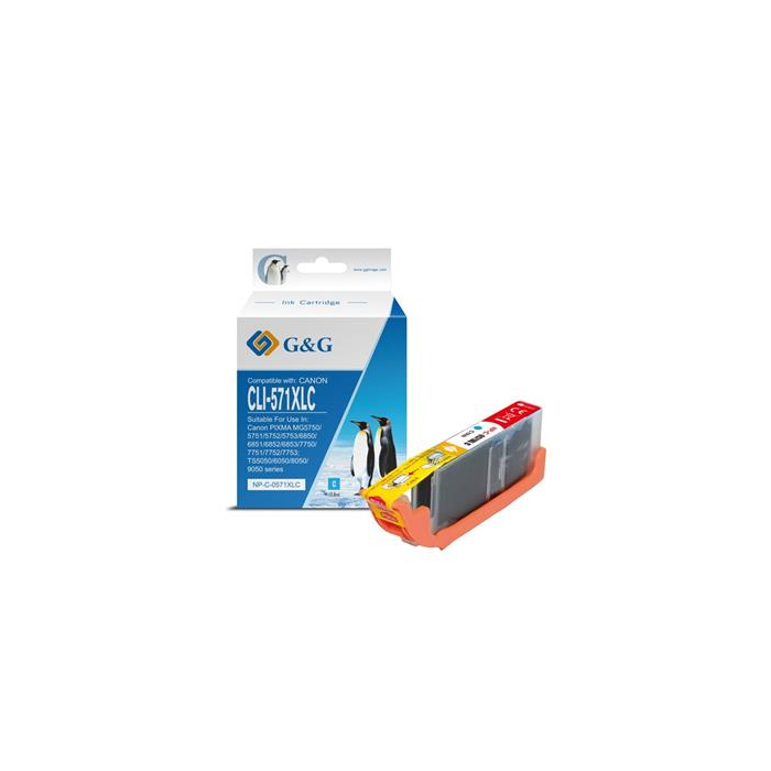 alt. kazeta G&G (CANON CLI-571XLC pre CANON PIXMA MG5700/MG5750/MG5751/ MG5752/MG5753/MG6800/MG6850 /MG6851 (12,2ml)C)