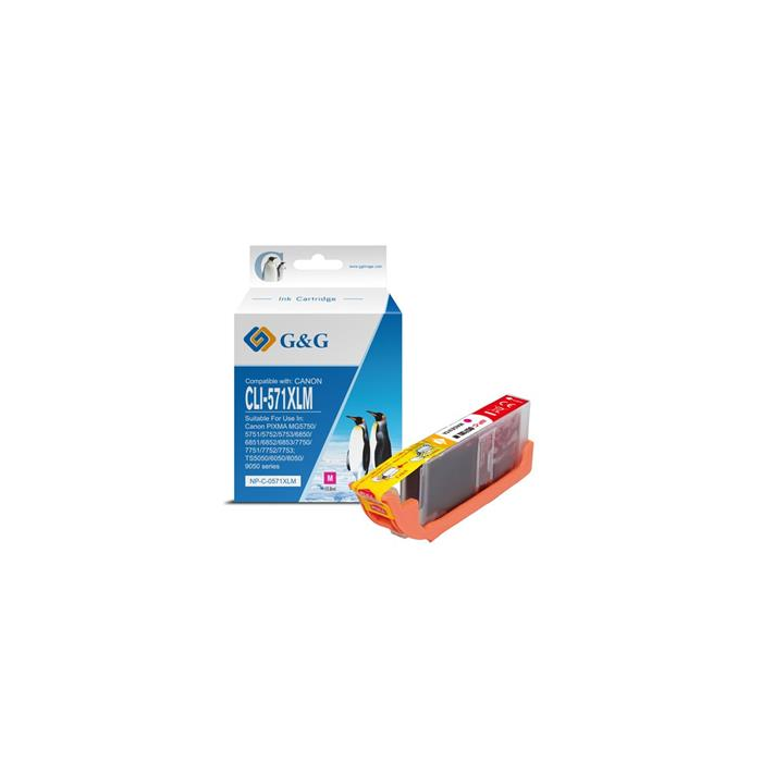alt. kazeta G&G (CANON CLI-571XLM pre CANON PIXMA MG5700/MG5750/MG5751/ MG5752/MG5753/MG6800/MG6850 /MG6851 (12,2ml)M)