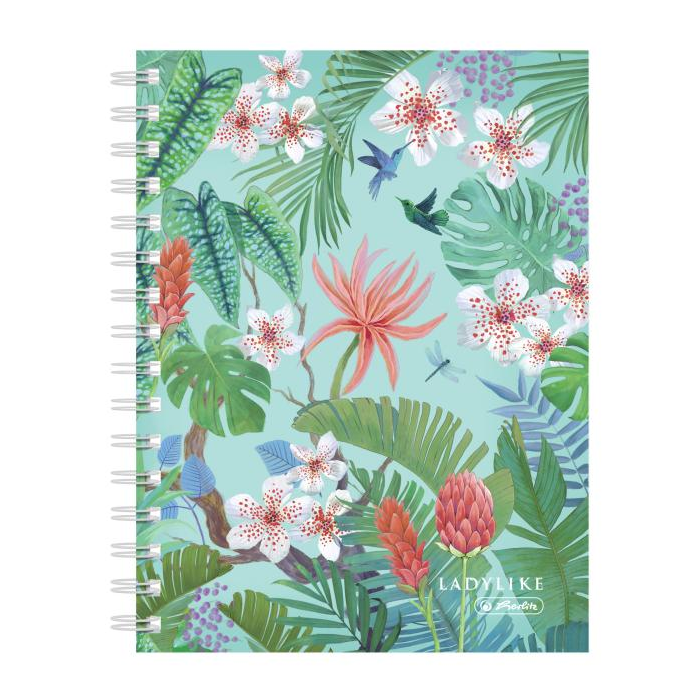 Poznámkový blok Ladylike, 100 listov, úprava štvorčeková s okrajom, 70 g/m², jednoduchá, resp. dvojitá špirála, perforácia, zaoblené rohy, motív Jungle.