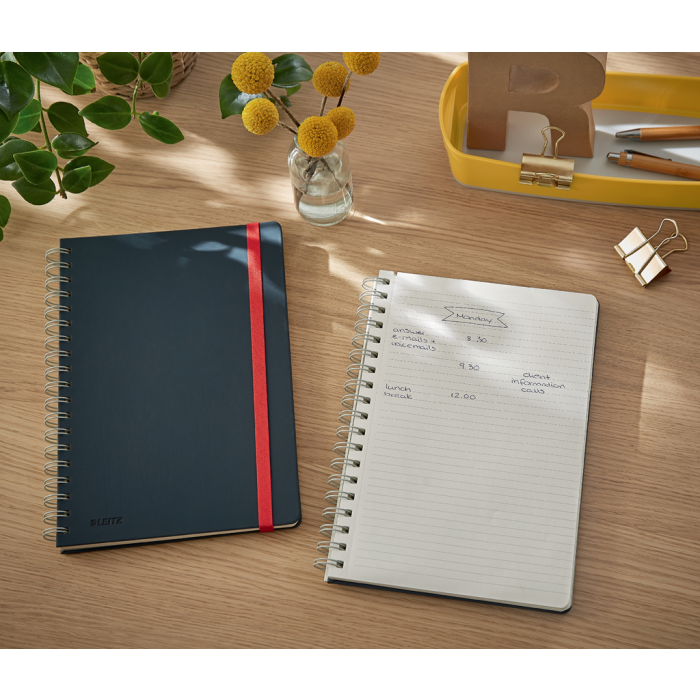 Krúžková drôtená väzba umožňuje otvorenie zápisníka o 360 °, takže si môžete ľahko robiť poznámky za pohybu