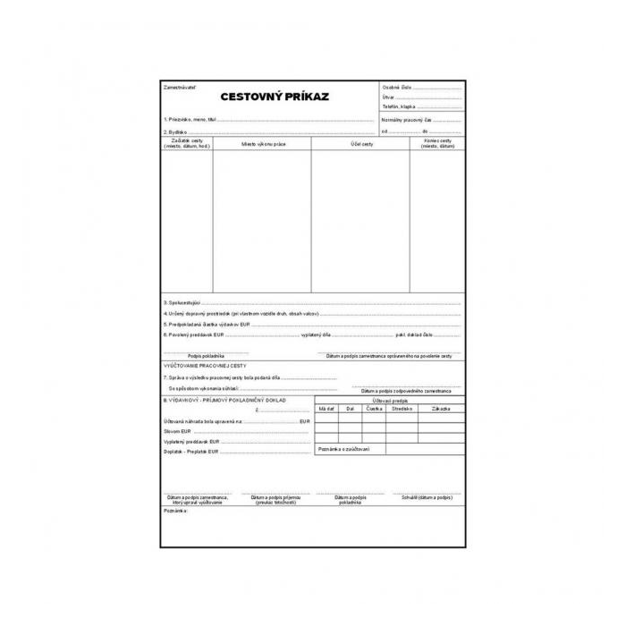 Tlačivo : Cestovný príkaz A4 blok. Balenie 100 listov.