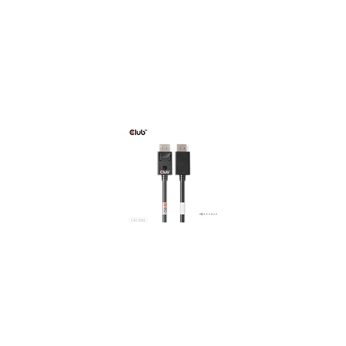 Kábel Club 3D CAC-1092 DisplayPort™ 2.1 umožňuje pripojenie vášho (herný) počítača alebo notebooku s podporou DisplayPort™ k monitora (Ultra) s vysokým rozlíšením alebo inému zariadeniu s podporou DisplayPort™. DisplayPort™ 2.1 UHBR10/13.5/20 až 80 Gb/s, má tiež podporu pre Display Stream Compression 1.2 (DSC), Forward Error Correction a rozširuje maximálny počet vložených audio kanálov na 32. Má uzamykateľné konektory DisplayPort™ zabezpečujúce bezpečné, spoľahlivé spojenie, s NOVÝMI kontaktnými prstami špeciálne navrhnutými pre tieto vysoké rýchlosti. Jednoducho stlačte zabudované jednodotykové tlačidlo na odomknutie konektora. Mäkký obal UltraFlex chráni kábel pred ohýbaním a poškodením deformáciami.