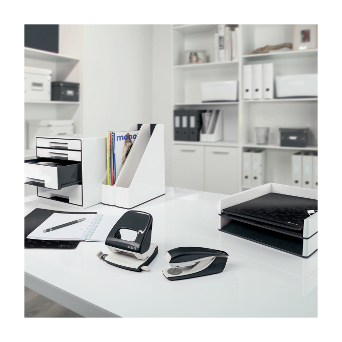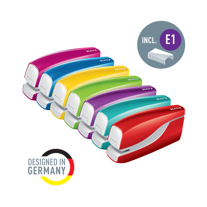 Elektrická zošívačka Leitz New NeXXt WOW. Vďaka jednoduchému ovládaniu jednou rukou je ideálna na časté používanie. Technológia s napájaním na batérie na zošívanie v pohybe. V žiarivých farbách WOW. Batérie (4× 1,5 V AAA LR03) nie sú súčasťou balenia. Kapacita 10 listov. Náhradné spinky ES556800. Farba čierna.