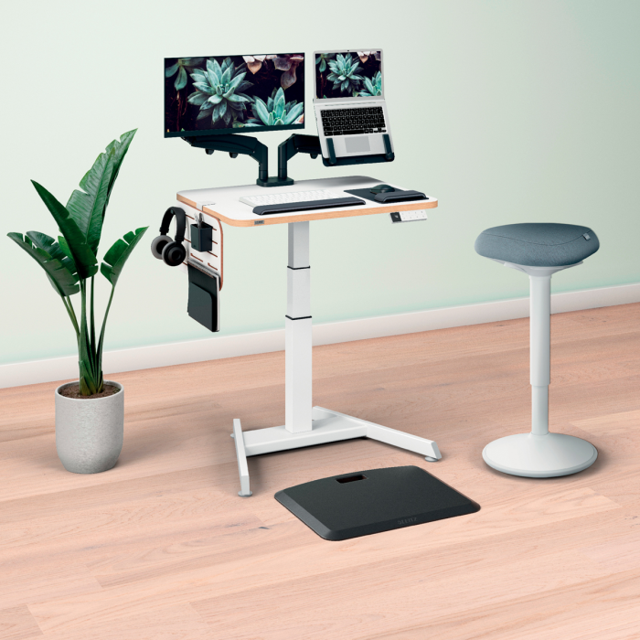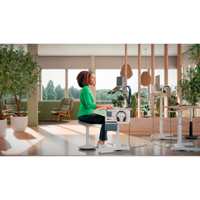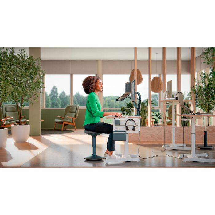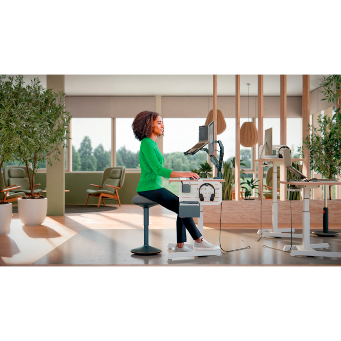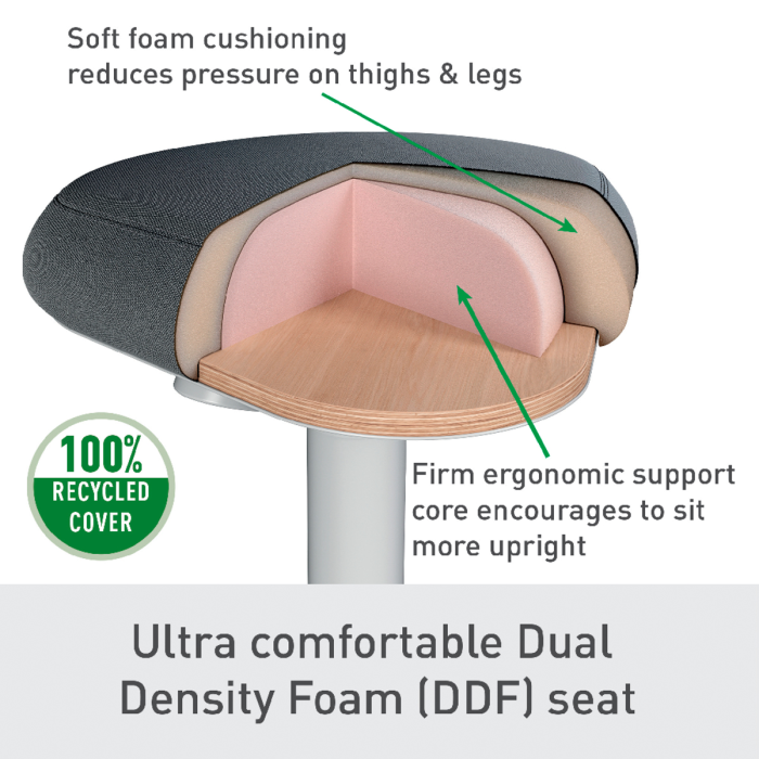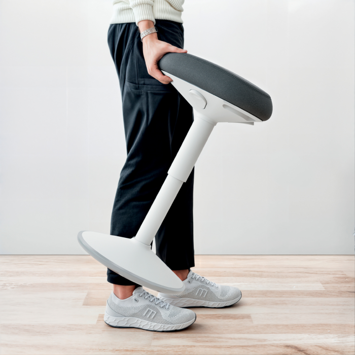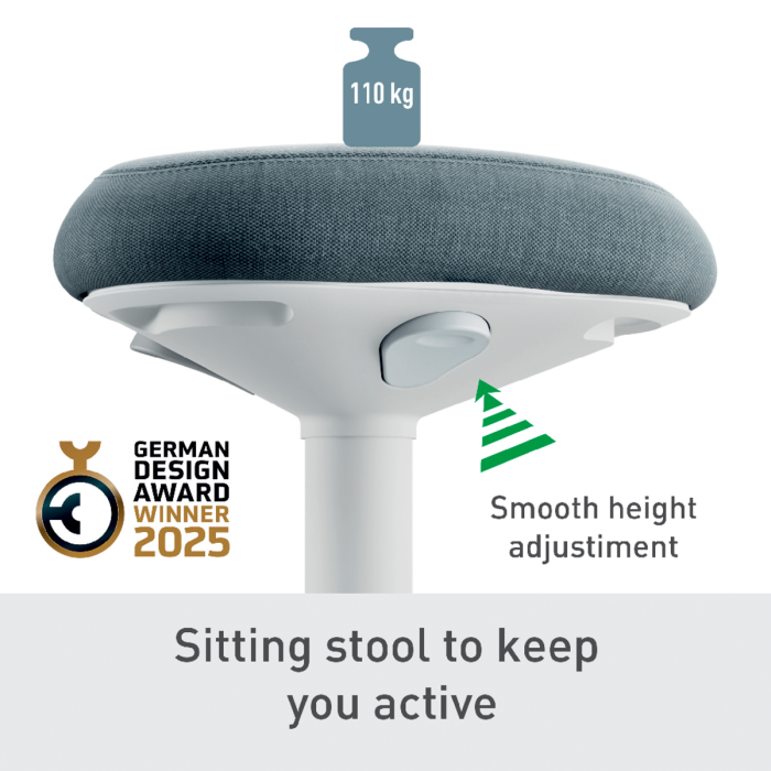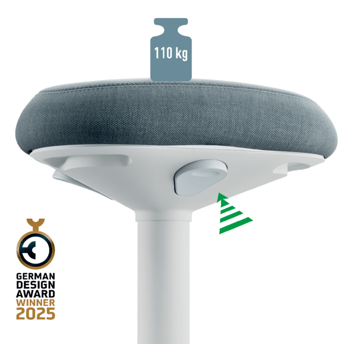 Pre perfektnú oporu v stoji pri stoloch na sedenie/st alebo pri vysokých rokovacích stoloch vďaka perfektnému výškovému nastaveniu pre každú telesnú výšku Jedinečné, vysoko pohodlné a ergonomické sedadlo s penou s dvojitou hustotou; vyvinuté v spolupráci s IGR Udržuje vaše svaly aktívne vďaka hojdacej základni Jednoduché nastavenie výšky vďaka technológii plynových pružín, stlačte jedno z 3 tlačidiel bez ohľadu na polohu sedenia