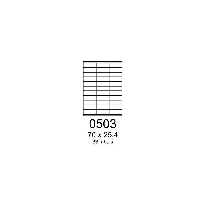 Etikety jsou vyrobeny ze samolepicího bílého papíru, který má svrchní bílý bezdřevý papír gramáže 70g/m2 +