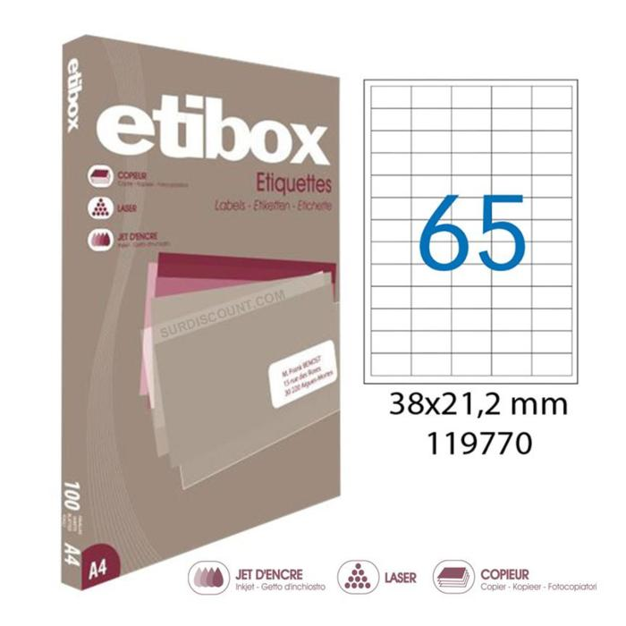 Cenovo výhodné etikety vhodné do laserových a atramentových tlačiarní, ako aj kopírovacích strojov. Rozmery: 38x21,2 mm Počet etikiet: 6500 Balenie: 100 hárkov