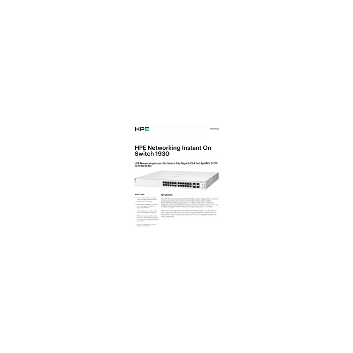 HPE Networking Instant On Switch 24p Gigabit CL4 PoE 4p SFP+ 370W 1930 (JL684B)
