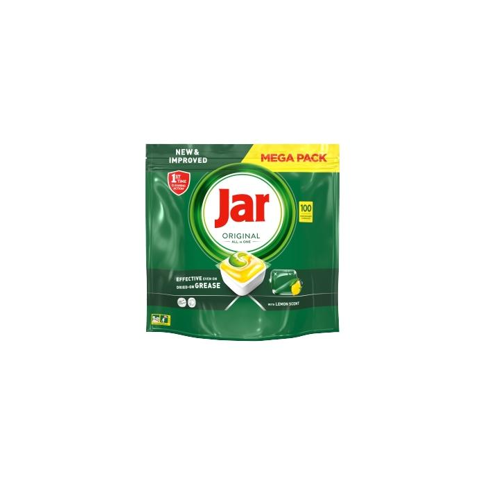 Kapsuly do umývačky riadu Jar Original All in One čistia hneď na prvýkrát, sú účinné aj pri zaschnutej mastnote a zanechajú váš riad žiarivo čistý. Jar kombinuje tekutinu a prášok do jednej silnej kapsuly. Jej vysokorozpustné vrecúško sa rýchlo rozpustí a čistí hneď od začiatku programu. A tak ľahko sa používajú! Nemusíte ich odbaľovať, stačí vložiť do dávkovača na čistiaci prostriedok do umývačky riadu.