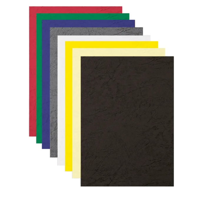 Kartón 250 g. Z jednej strany povrchová reliéfna úprava v imitácii kože, z druhej strany hladká.