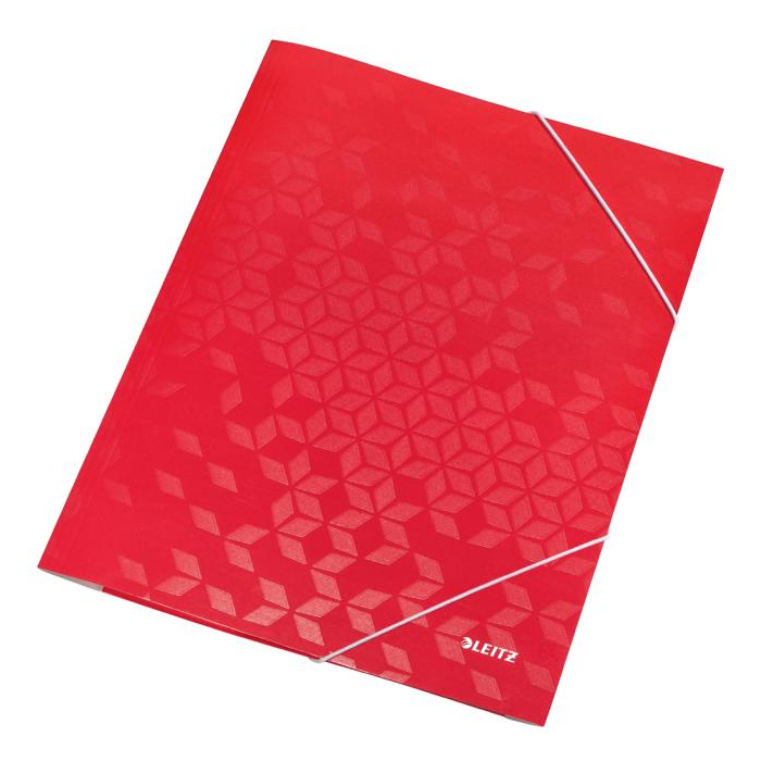 Obal s tromi chlopňami a elastickými gumičkami rady WOW v žiarivej farbe zo špeciálneho kartónu s perfektným farebným efektom. PP laminácia chráni farby a dáva výrobku lesklý vysokokvalitný vzhľad. Kapacita 250 listov. Farba: červená.