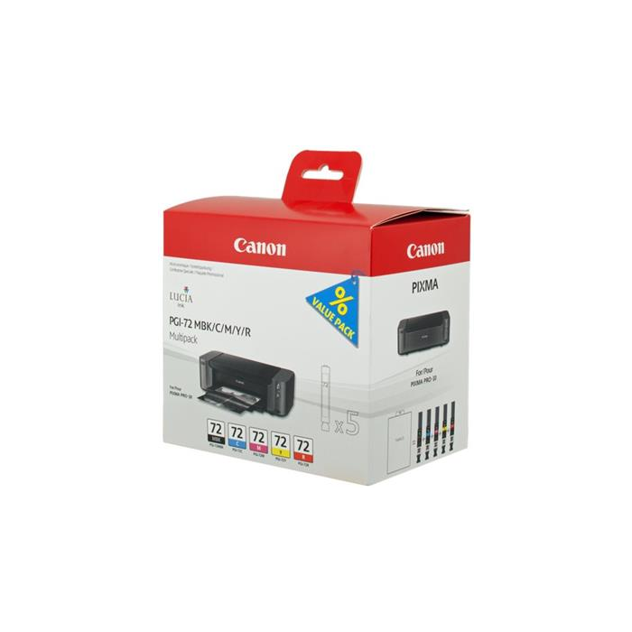 atramentové kazety CANON pre: PIXMA Pro 10 multipack obsahuje 5 farieb: matte balck/cyan/magenta/yellow/red (matná čierna/azúrová/purpurová/žltá/červená)