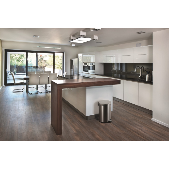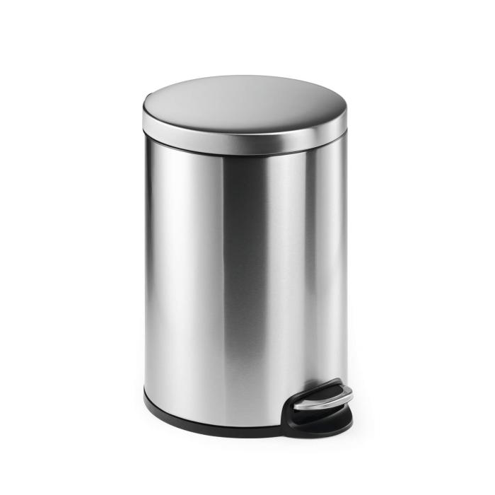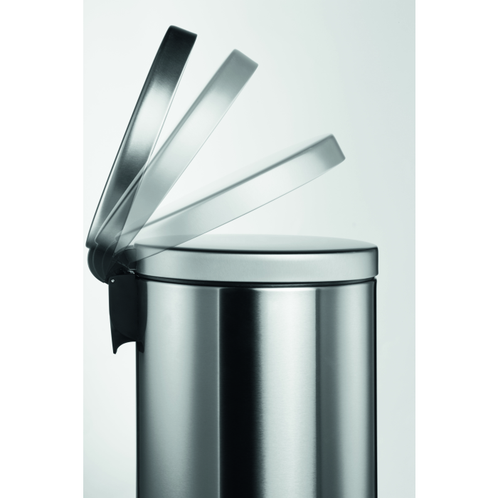 Odpadkový kôš na papier z nerezovej ocele vybavený vyberateľnou vnútornou nádobou z plastu a plastovou objímkou na vrecko na odpadky. Spodná časť z plastu proti korózii a pre lepšiu stabilitu. Veko na pedál sa zatvára ticho. Úprava z nerezovej ocele je potiahnutá vrstvou proti neželaným odtlačkom prstov. Objem 20 l, rozmery 360 x 455 mm.