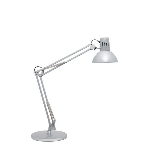 Vydarená dizajnová klasika s presvedčivým pomerom cena/výkon. Flexibilne nastaviteľné vo všetkých smeroch. Mimoriadne stabilný: ťažká základňa umožňuje ďaleko predĺženie ramena. Profesionálne pracovné svetlo, vysoká kvalita svetla. Vhodné pre 9,5W LED žiarovky (pätica E27) MAUL. Bez obmedzenia vysunutia ramena. Stabilná základňa. Noha: podstavec. Materiál: hlava: kov - rameno: kov - základňa: vážená vložka, podložka vhodná na stôl. Rozmery: výška: 47 cm - hlava: Ø 17 cm - rameno: dĺžka pod 35 cm, dĺžka nad 35 cm - základňa: Ø 23 cm. Farba strieborná.