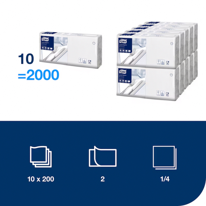 Tork servítky na obed sú ideálne pre zariadenia, kde sa servírujú ľahké jedlá alebo ľahké občerstvenie. Môžete si vybrať z palety moderných aj tradičných farieb, ktoré budú ladiť s interiérom vašej reštaurácie.