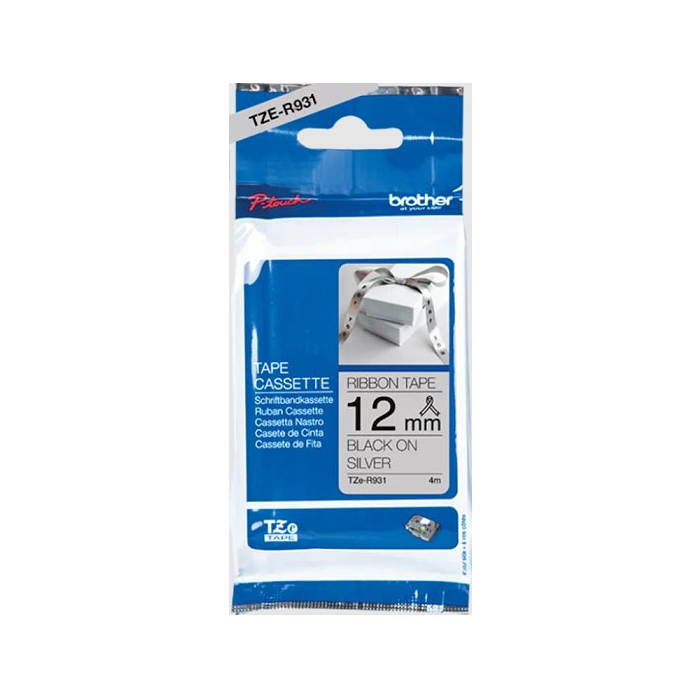 páska BROTHER TZeR931 čierne písmo, strieborná stužková páska Tape (12mm)