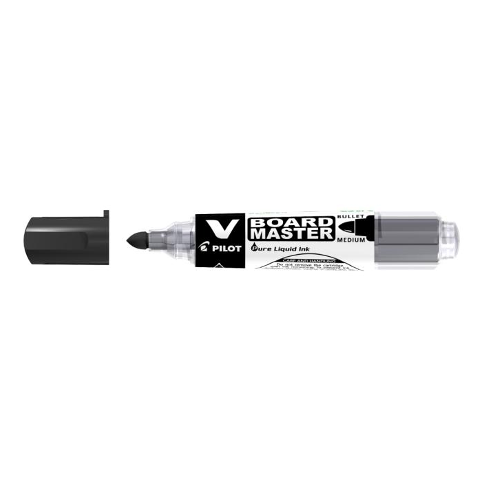 Popisovač na biele tabule s vymeniteľnou náplňou na alkoholovej báze. Priemer hrotu 6 mm, šírka stopy 2,3 mm. Farba čierna.