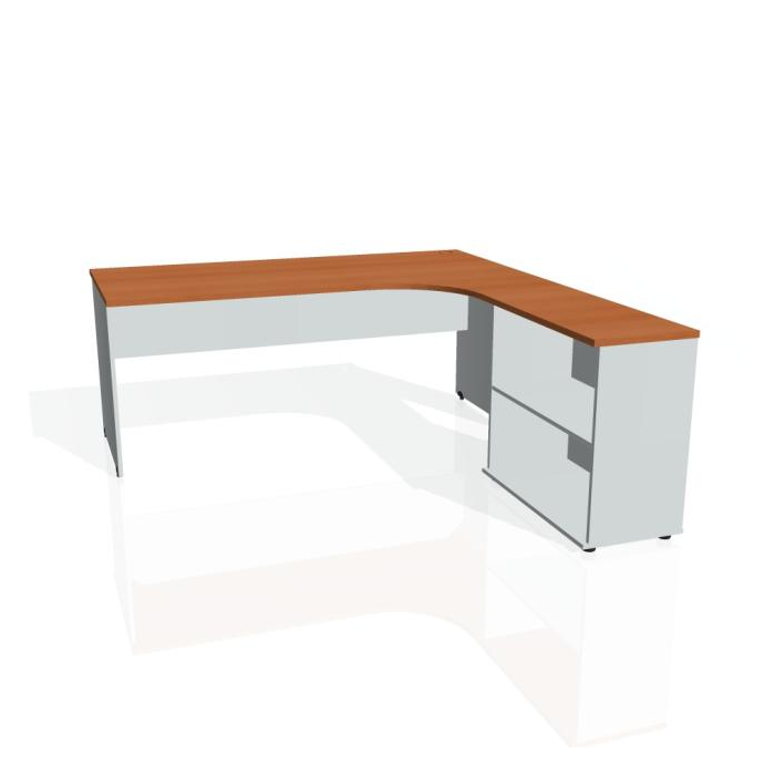 Pracovný stôl Gate, ergo, ľavý, 180x75,5x200 cm, čerešňa/sivá