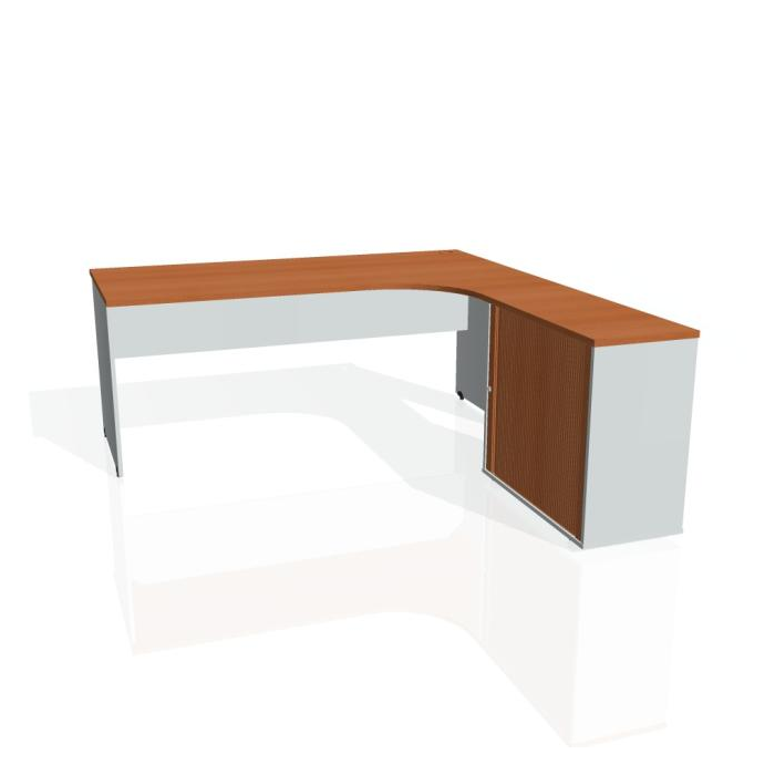 Pracovný stôl Gate, ergo, ľavý, 180x75,5x200 cm, čerešňa/sivá