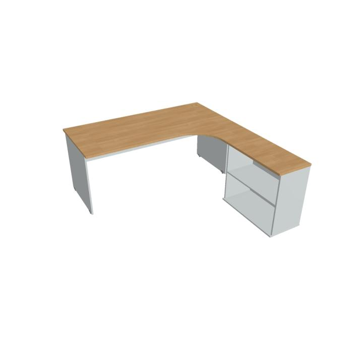 Pracovný stôl Gate, ergo, ľavý, 180x75,5x200 cm, dub/sivá