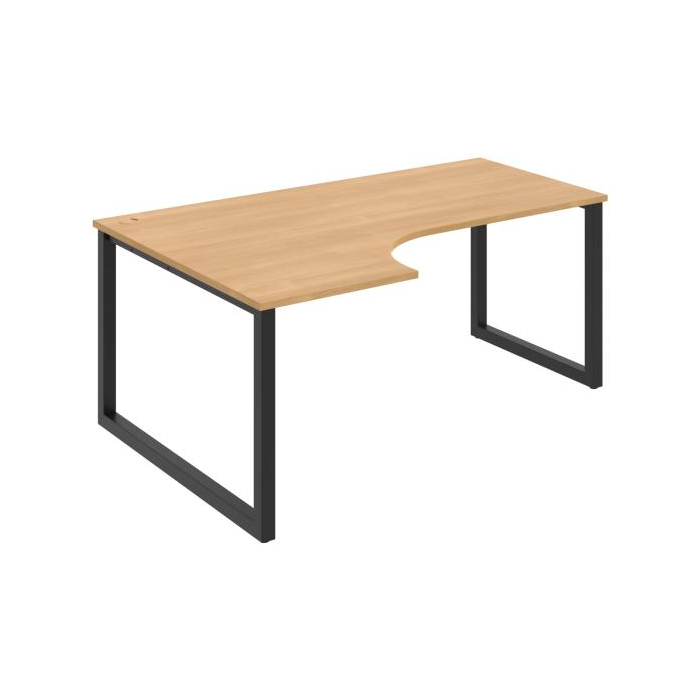Pracovný stôl UNI O, ergo, pravý, 180x75,5x120 cm, dub/čierna