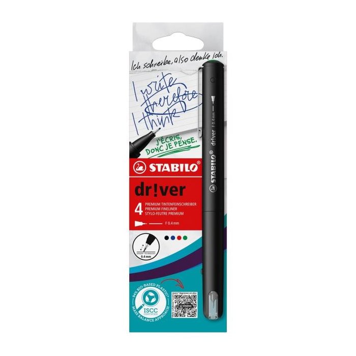 Prémiový jemný liner STABILO dr!ver je dokonalým doplnkom pre všetky príležitosti písania. Či už v kancelárii, v triede alebo doma - jemný liner je nadčasový, jednoduchý a veľmi spoľahlivý písací nástroj.