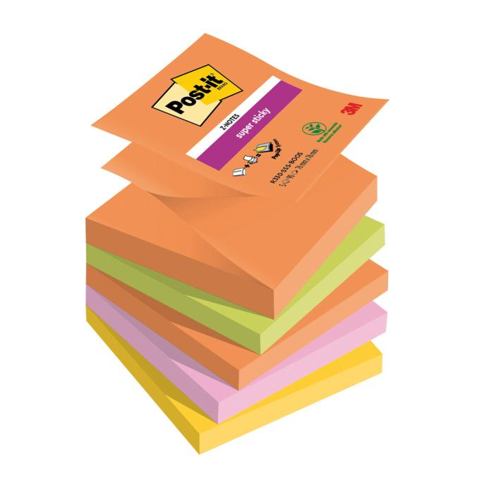 Post-it® silne lepiace Z-bločky majú v porovnaní s originálnymi Post-it® bločkami 2 x vyššiu priľnavosť. Tieto Z-bločky sa výborne sa hodia, keď práve telefonujete alebo máte plné ruky: odlepte bloček a majte jednu ruku stále voľnú. Sú veľmi pevné, univerzálne a navrhnuté tak, aby poznámky vynikli. Počet lístkov 5x90. Rozmer 76 x 76 mm.