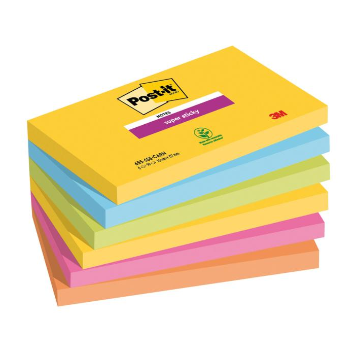 Post-it® silne lepiace bločky majú v porovnaní s originálnymi Post-it® bločkami 2 x vyššiu priľnavosť. Sú veľmi pevné, mimoriadne univerzálne a dodávajú sa v rôznych žiarivých a živých farbách, aby na nich všetky informácie alebo odkazy vynikli. Rozmer 76 x 127 mm. Balenie obsahuje 6 bločkov po 90 lístkov.