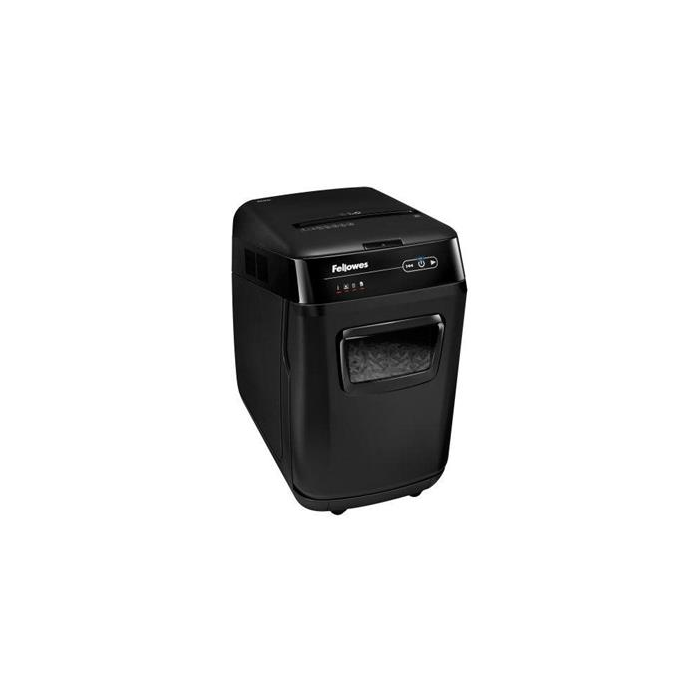 Skartovanie nikdy nebolo jednoduchšie. Revolučná novinka značky Fellowes Vás o tom presvedčí. Len nalož, zapni a choď. Tento automatický skartovací stroj Vám umožní venovať sa prospešnejším kancelárskym činnostiam, ako je opakované postávanie u bežného skartovača. Zariadenie je schopné na jeden pracovný cyklus pri automatickom podávaní skartovať až 200 listov 70g papiera v krížovom reze 4 × 38 mm. Skartovač je vybavený vstupnou štrbinou pre ručné podanie až 10-tich listov papiera. Výkonný rezací mechanizmus spracuje pri automatickom podávaní zošívačkou zošité papiere (až 20 sponkou zošitých listov 70g papiera), sponky (až 20 spojených listov). Pri manuálnom podávaní aj kreditné karty, CD / DVD.