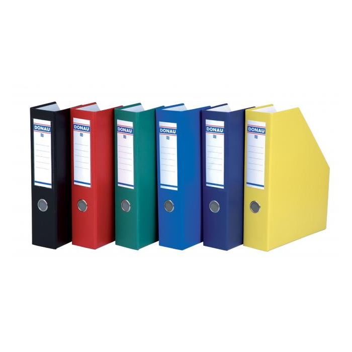 Stojan na prospekty, časopisy a katalógy s vymeniteľným chrbtovým štítkom. Materiál kartón, potiahnutý z vonkajšej strany 100 um polypropylénovou fóliou. Rozmery (š × v × h) 72 × 320 × 245 mm. Farba: modrá
