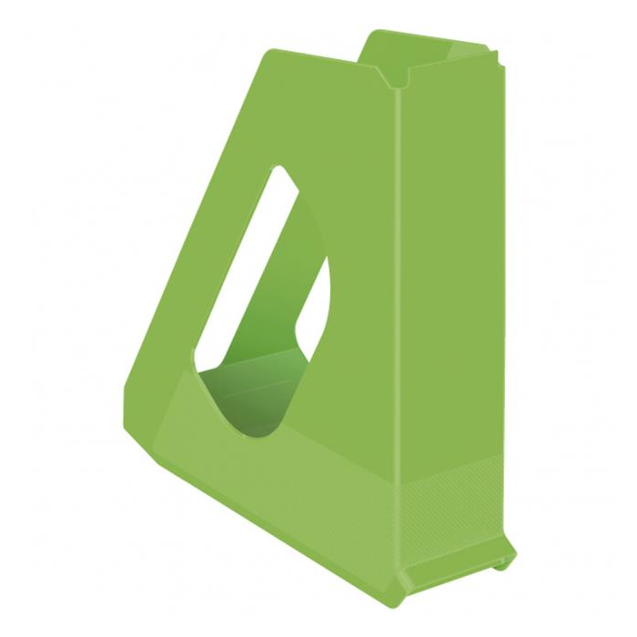 Moderný stojan na časopisy pre uloženie dokumentov formátu A4 na pracovnom stole s unikátnym embosovaným povrchom (štvorčeky) na dne stojana vo sviežich farbách radu Esselte VIVIDA. Znížený chrbát pre jasnú identifikáciu obsahu z prednej strany, integrovaný úchyt pre ľahké vytiahnutie z police. Farba zelená. Rozmery (š x v x h) 72 x 256 x 260 mm. Je možné kombinovať ho s ostatnými výrobkami z radu Esselte Europost a VIVIDA pre jednotný vzhľad kancelárie.