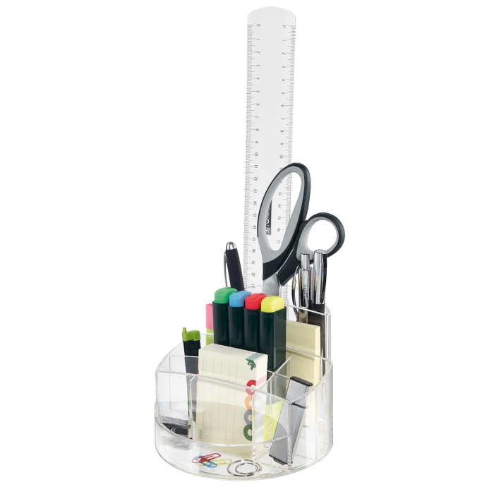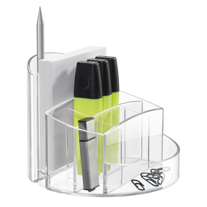 Elegantný tvar a vysoká kvalita spracovania skombinovaná s 9. separátnymi oddeleniami na perá a drobné kancelárske potreby (spinky, gumy). Väčšie balenie 4 ks. Farba: číra