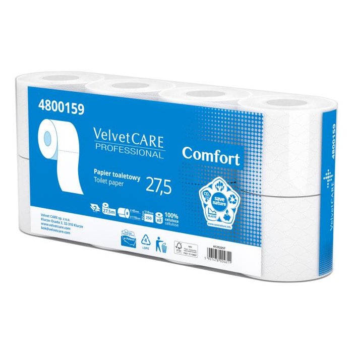 Toaletný papier 2-vrstvový VELVET CARE Comfort 100% celulóza 27,5m (8ks)