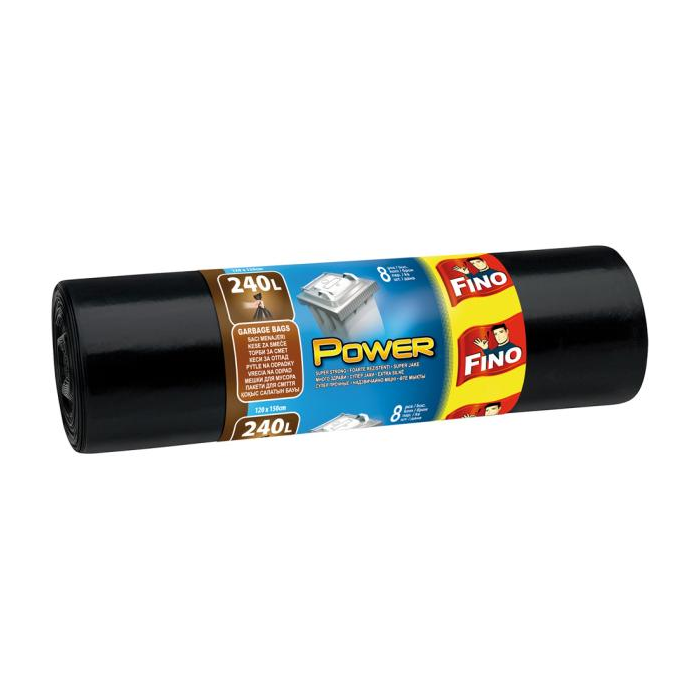 Vrecia zaväzovacie FINO Power 240 ℓ, 45 mic., 120 x 150 cm, čierne (8 ks)