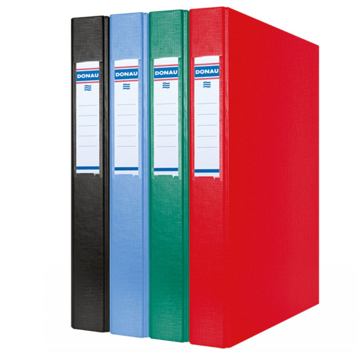 Zakladač so 4 krúžkami v tvare O a priemeru 25 mm, vyrobený z kartónu s hrúbkou 1,9 mm a gramážou 1170 g/m². Potiahnutý z vonkajšej strany ekologickou PP fóliou s plátennou štruktúrou o hrúbke 100 µm a z vnútornej strany podšívkou z bieleho papiera. Vymeniteľný obojstranný štítok na chrbte. Väčšie balenie 10 ks. Farba: červená Šírka chrbta: 40 mm Rozmery: 265 x 320 x 40 mm Formát: A4