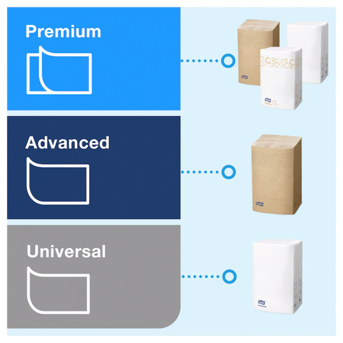 - Indikátor úrovne ukazuje, kedy je potrebné doplnenie, čo zaručuje 100 % dostupnosť servítok. Už nikdy sa vám nestane, že sa počas najrušnejšej časti dňa minú servítky.