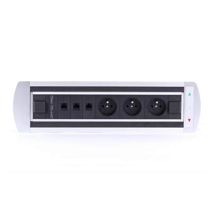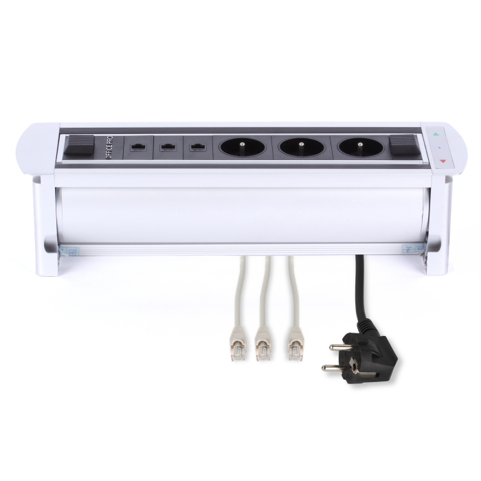 • prípojné miesto je pohodlne k dispozícii priamo na pracovnom stole • otáčanie pomocou elektromotora a magnetickej spojky • vybavenie: 3× elektrická zásuvka, 3× dáta • bezpečnostná fotobunka proti uzatvoreniu pri používaní • rozmery: 40,3 × 11 × 10,3 cm • hmotnosť: 3 kg