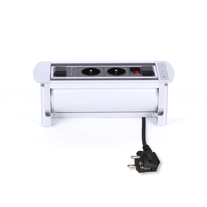 • prípojné miesto je pohodlne k dispozícii priamo na pracovnom stole • otáčanie pomocou elektromotora a magnetickej spojky • vybavenie: 2× elektrická zásuvka • bezpečnostná fotobunka proti uzatvoreniu pri používaní • rozmery: 29,8 × 11 × 10,3 cm • hmotnosť: 3 kg