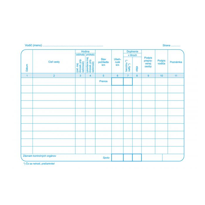 Záznam o prevádzke vozidla osobnej dopravy, A5, blok, 100 listov