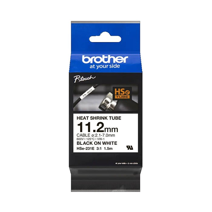 zmršťovacia bužírka BROTHER HSe231E čierne písmo, biela bužírka TUBE (11.2mm)