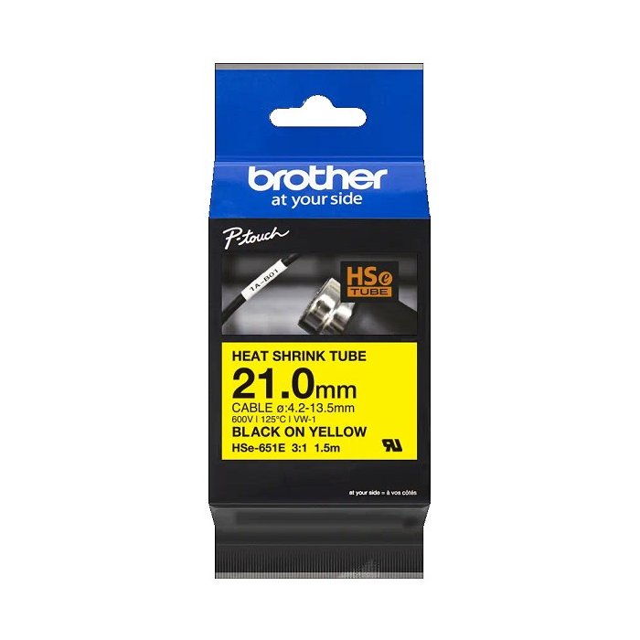 Zmršťovacia bužírka pre popisovače BROTHER HEAT-SHRINK TUBE žltá bužírka, čierne písmo rozmer 21mm POUŽITIE LEN PRE NASLEDOVNÉ POPISOVAČE !!!!! PT-E500 PT-E550W PT-E560 PT-P900W PT-P950NW PT-D800W