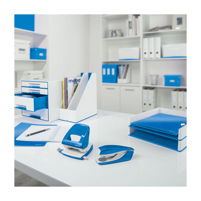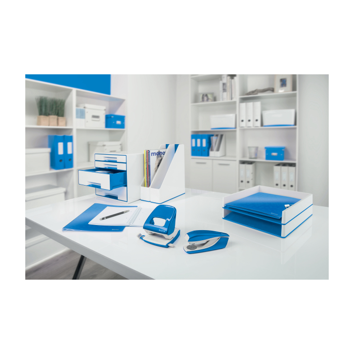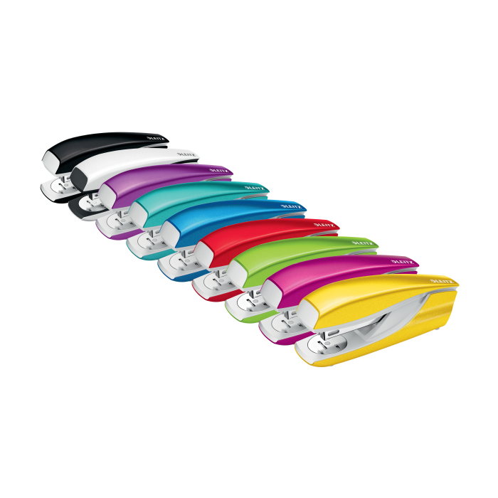 Pevná a spoľahlivá zošívačka rady WOW v žiarivej farbe s novou DIT technológiou na perfektné zošívanie. Integrovaný vyberač spiniek, základňa z kovu, rameno kov/-plast, protišmykové plastové dno. Zošívanie otvorené, uzatvorené a nástenkové. Kapacita 100 spiniek 24/-6 alebo 140 spiniek 26/-6. Kapacita zošívania 30 listov. Hmotnosť 265 g. 10-ročná záruka. Štartovacie balenie 200 ks spiniek 24/-6. Farba: metalická modrá
